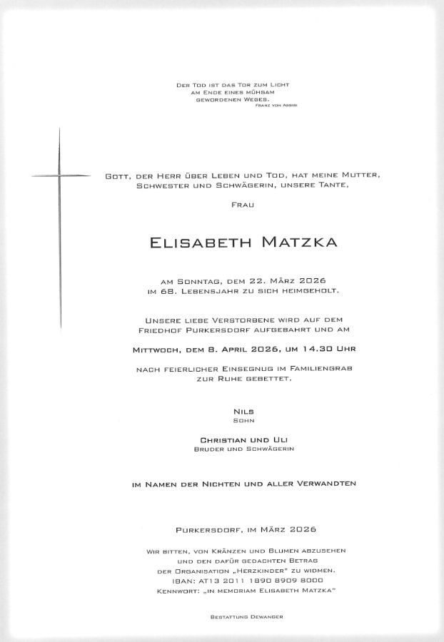 Liebe Familie, wir haben Lisl als wunderbare Musikerin erlebt. Mir ist eine Solofantasie von Telemann, von ihr musiziert, noch sehr in Erinnerung. Der himmlische Chor hat eine schöne Stimme mehr. Die besten Wünsche an die Trauerfamilie sendet Tina Schmidt mit allen Lehrkräften der Musikschule Oberes Wiental