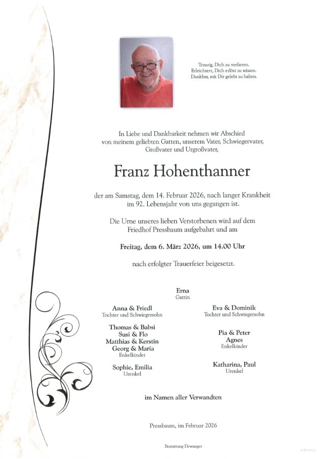 geboren am 24. November 1934 in Neurißhof gestorben am 14. Februar 2026 in Pressbaum